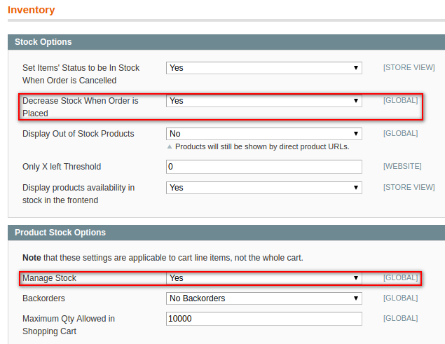 M2E Pro will reserve the Item Quantity only if both 'Manage Stock' and 'Decrease Stock When Order is Placed' options are enabled in your Magento under System > Configurations > Catalog > Inventory:
