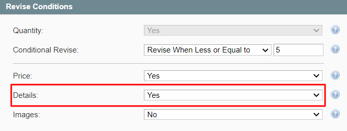 If the Details option is enabled in the Revise Conditions of M2E Pro Synchronization Policy, and the changes are made to the Magento Attribute selected in your Product Tax Code Policy, it will trigger the automatic data revise on Amazon: